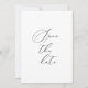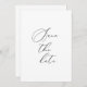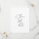 Salve o cartão de anúncio simples de data. Tipografia preta sobre fundo branco com detalhes no verso. Kimberly Brett.