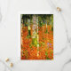 Cartão com a pintura Farmhouse de Gustav Klimt com Árvores de Birch (1903). Uma paisagem autóctone de folhas de laranja numa floresta de pássaros com lindas flores azuis. Um presente maravilhoso para fãs de Arte Nouveau e de Arte Austríaca.