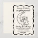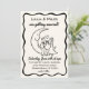 We are over the moon wedding invitation, whimsical hand drawn illustrations showing a bride and groom toasting to their happiness.