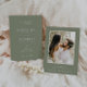 HARMONIA | Sage Green. Salve o cartão com fotos de data. Recursos, tipografia bege claro, detalhes de ilustração de galeria botânica verde e foto de solteiro no verso.