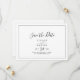 Este minimalista horizontal, salvar o cartão de data é perfeito para um casamento simples. A design romântica moderna apresenta a tipografia clássica, em preto e branco, emparelhada com uma caligrafia rústica, mas elegante, com estilo voltado para a mão. Personalizável em qualquer cor. Mantenha o design simples e elegante, como está, ou personalize-o adicionando seus próprios gráficos e trabalhos de arte.