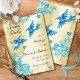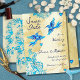 The design blends vintage gold tones with radiant blue hues, capturing the soul of a Mexican hacienda wedding or a destination ceremony filled with rococo and vintage vibrant charm. The watercolor hearts and graceful floral motifs complement the free-spirited movement of the birds, symbolizing eternal devotion and freedom. This design pairs beautifully with matching wedding invitations, RSVP cards, and envelopes, creating a cohesive and luxurious vintage stationery collection.