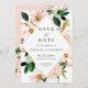 Anuncie o seu próximo casamento com este Cartões salve a data que contém Flores de Hydrangea Rosa Espelhadas com scripts de caligrafia excelentes que rodeiam seus detalhes. Este é o pequeno lembrete perfeito para o seu grande dia no estilo que sempre quis.