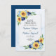 Estes cartões salve a data apresentam um design floral de aquarela com girassóis, híbridos e flores azuis marinhos sobre fundo de aquarela. Personalize-os com o seu texto.