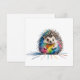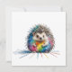 Ein freundlicher Igel in bunten Farben, eine kindliche Zeichnung eines Igels, mit Tusche und Kreide, gekleckst und geschmierte ist die Farben als Stil und Effekt des lustigen Bildes.