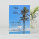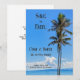 Quer o seu casamento seja uma viagem tropical ou apenas um tema de praia, esta ilha tropical com palmeiras e mar azul, define o clima. Cores azuis ricas do céu e da água rodeiam duas palmeiras verdes neste conjunto de casamento com tema tropical. Personalize facilmente para os detalhes do seu evento. Detalhes completos do casamento listados no verso, ajuste conforme necessário, ou remova tudo junto.