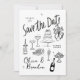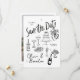 Set the tone for a joyful celebration with this whimsical, hand-drawn Save the Date card! Featuring charming black-and-white sketches of wedding icons — cake, champagne, flowers, and more — this playful design blends casual charm with artistic flair.