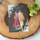 Uma bela e colorida ilustração de um casal paquistanês no dia do seu casamento, num fundo verde de floresta com flores brancas, inclui a personalização.