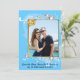 Fundo Azul com Ouros e Quadro Dourado com Imagem do Arco Salvar o Convite de Data. Converta isso para qualquer ocasião. Personalize este modelo com suas informações e fotos.