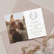 Um Casamento de Foto Branco e Preto Monograma Elegante Salve a data com coroa desenhada à mão e tipografia clássica. Clique no botão editar para personalizar este design.
