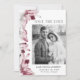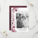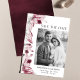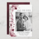 Anuncie sua data de casamento com nossa na moda e foto moderna, salve o cartão de data. O design apresenta uma borda de cristais de aquarela pintados em tons de vinho e burgundy. "Salvar a Data" é exibido em uma fonte preta moderna do serif. Personalize o cartão de data exclusivo, adicionando sua foto, nomes, data de casamento e local do casamento. A placa se reverte para exibir um belo fundo de cor d'água burgundy.