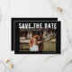 Cartões salve a data de fotos de casamento do coração gótico preto personalizados no fundo com seu próprio texto. Com um tema escuro "até que a morte nos separe" e um texto branco.