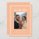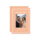 Moderno e simples: Salve o design de fotograma de data apresenta a sua imagem de noivado favorita emoldurada por um quadro branco nítido em um fundo de pêssego em tendência. Personalize e compartilhe seus detalhes de noivado e casamento com seus convidados em letra de na moda e roteiro. O design é completado com um quadro duplo moderno em branco. A parte traseira da placa é cor de pêssego sólido. Este design de configuração de retrato (altura é maior que largura) funciona perfeitamente com fotos de perto e fotos retangulares do seu cheio e do seu noivo. Escolha seu favorito! Entre em contato com invitationsuites@gmail.com com perguntas ou solicitações de cores personalizadas.