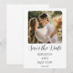 Anuncie seu grande dia com estilo de eterno usando esta elegante foto em preto e branco, salve o cartão de data. Apresentando sua foto de noivado favorita e sua tipografia sofisticada, este design minimalista é perfeito para casais que amam um olhar clássico e limpo. Personalize facilmente com seus nomes, data de casamento e foto.