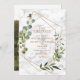Moderno e moderno, este bonito casamento Save the Date Card design apresenta um falso geométrico de cobre embelezado com a cor d'água eucalipto verde, sobre uma textura falsa de latido de mármore branco. A parte traseira da placa apresenta sua foto favorita do noivado. Parte de uma suíte de casamento. Copyright Elegant Invites, todos os direitos reservados.