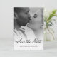 Este simples preto e branco moderno Salve a data apresenta caligrafia elegante preta, fundo branco de quadro preto. Na frente adicione sua bela foto com efeito de perda de brilho branco. Produtos correspondentes disponíveis em nossa loja.