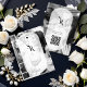 Delicar Excessivamente Transparência Vellum Negra e Branca Elegante Iniciais de Casamento 2 Fotos Salve a Ficha de Data com Código QR. Experimente um novo nível de elegância e refinamento com a nossa Delicada Vellum Transparency Elegante Black & White Save the Date Card. Feito com muita atenção aos detalhes, esse cartão capta a beleza eterno do clássico, infundado com elementos modernos para criar um anúncio de casamento sofisticado e memorável. Este belo cartão é personalizado à perfeição, apresentando suas iniciais e duas fotos impressionantes que representam maravilhosamente sua história de amor. O código QR discretamente integrado permite que seus convidados acessem detalhes de eventos adicionais sem esforço, como informações de local, opções de registro ou recursos de RSVP. Esta característica moderna, aliada à delicada transparência do vellum, eleva a sofisticação do cartão, fazer-o uma escolha única e distinta para o seu dia especial. A estética negra e branca homenageia a elegância clássica, enquanto o código transparente vellum e QR oferece uma reviravolta contemporânea, ideal para casamentos que misturam tradição com modernidade. Disponível em formato físico, este cartão é perfeito para aqueles que valorizam as ações tangíveis, ou num formato digital para aqueles que dão prioridade à conveniência e à acessibilidade. Se você tiver perguntas, solicitações de personalização ou precisar de assistência, estaremos aqui para ajudar. Vamos ajudá-lo a criar um anúncio de casamento que reflita a beleza e o amor que você compartilha, apresentado de uma forma elegante e inesquecível.