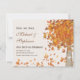 Personalize estes belos cartões de salvar a data com tema de outono e anúncios de casamento com a data do seu próximo casamento. Uma bela árvore com folhas em forma de coração pode ser personalizada com as iniciais do noivo e da noiva na frente destes anúncios. Fundo de coração laranja. Arte © Chrissy H. Studios, LLC. Todos os Direitos Reservados.