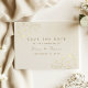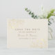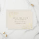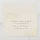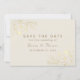 Cartão elegante de Save the Date com delicados acentos florais dourados em um fundo de marfim suave. Apresenta fontes de letra e serifadas atemporais com personalização completa para seus nomes e data. Uma maneira romântica e clássica de anunciar seu casamento com estilo.