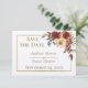 O outono é um belo momento para um casamento, e as cores deste cartão Salvar a Data mostram-no. Terras suaves de ferrugem, castanhas, bronzeadas e creme com folhagem verde-úmida e uma falsa borda de ouro. Este cartão, que faz parte do Fall Floral Buquê Invitation Suite de cartas criadas pela Simply Farmhouse Press, também está disponível com a dourada para um olhar mais bonito.
