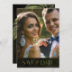 Evoque uma noite de verão moderna nos trópicos, com joias em cascata de folhas de palma enrugadas de diamante ou elimine as camadas de joias para um olhar um pouco mais conservador. Este conjunto apresenta folhas cinzentas e fundo texturizado em tons de azeitona clara a verde-escura de algas marinhas. O cartão 'Salvar a Data' do casamento mostrado aqui tem uma borda superior de folhas espumantes, uma fonte elegante do Serif com a noiva e a imagem do noivo no reverso. Insira facilmente sua própria foto e detalhes do casamento usando o modelo fornecido. Veja o link de coleção nesta página para ver todos os itens correspondentes neste conjunto bonito ou ID830 de pesquisa para ver opções de cor adicionais para este design.