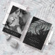 Opte por um olhar de Velho Glama de Hollywood usando as peças nesta suíte de casamento como mostrado, com joias em cascata das folhas de palma enrugadas de diamante ou apagar as camadas de joias para um olhar um pouco mais conservador. Este conjunto apresenta folhas em prata cintilante contra um carvão escuro, fundo texturizado. O cartão 'Salvar a Data' do casamento mostrado aqui tem uma borda superior de folhas espumantes, uma fonte elegante do Serif com a noiva e a imagem do noivo no reverso. Insira facilmente sua própria foto e detalhes do casamento usando o modelo fornecido. Veja o link de coleção nesta página para ver todos os itens correspondentes neste conjunto bonito ou ID830 de pesquisa para ver opções de cor adicionais para este design.