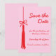 Certifique-se de que seus entes queridos marquem suas agendas com este elegante cartão de save-the-date de formatura! Com um pendão desenhado à mão e um laço elegante em estilo coquette, este design é ao mesmo tempo sofisticado e comemorativo. A fonte em estilo caligrafia manuscrita adiciona um toque pessoal e moderno, enquanto a paleta de cores rosa e vermelha feminina cria um visual vibrante e sofisticado.