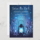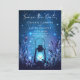 Anuncie a data do seu casamento com este cartão de save the date personalizável. Ele apresenta uma cena caprichosa de uma lanterna vintage e fireflies. Este anúncio de save the date caprichoso é perfeito para qualquer tema ou estação de casamento.
