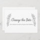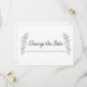 Folhas desenhadas por lápis e ramificação salve o cartão de data belamente ilustrado no estilo de desenho de lápis e apresentando um script elegante e grande dizendo "Altere a data". e espaço para adicionar as datas escolhidas. Altere os nomes e quaisquer outras informações, como a localização e as datas. Você pode adicionar seus próprios detalhes de casamento ou mensagem pessoal no verso do cartão.
