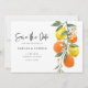 Acelere seu grande dia com esta placa personalizável Save the Date apresentando um design de limões e laranjas de cor d'água fresco e vibrante. Perfeito para um casamento de primavera ou verão, a ilustração alegre da fruta adiciona um toque de sol e chorão ao seu anúncio. Personalize este cítrico e salve o cartão de data com seus nomes, data do casamento e quaisquer outros detalhes que você gostaria de compartilhar — este cartão é tão único quanto sua celebração! Quer você vá para uma vibração casual, tropical ou rústica, é certo que vai dar o tom para um evento inesquecível.