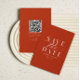 Essa opção ousada, porém clássica, de salvar a data design apresenta uma paleta de cores laranja queimada, terracotta e uma opção moderna de código QR para fornecer suas informações de casamento futuras. Este design é totalmente personalizável com o seu texto e URL para o código QR.