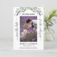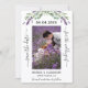 Um casamento moderno Salve o cartão com fotos de Data. Decorado com flores de lavanda, flores e verde de eucalipto. Personalize e adicione sua foto, data, nomes.
