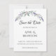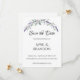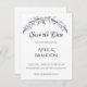 Um design elegante e vintage, com rosas de marfim, eucalipto e lavanda pintados em cor d'água romântica. Salve os Convites de Data.