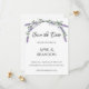 Lavanda e Eucalyptus Wedding Salvem os convites para Data. Um design elegante e vintage com eucalipto e lavanda pintado em cor d'água romântica.