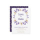 Nada diz romance como lavanda, e neste outono, salvo a data, as flores delicadas fazem um quadro suave para o texto. O trigo é emparelhado com a lavanda para adicionar um talento rústico ao design. É utilizada uma fonte sans serif para os títulos da simplicidade moderna. No verso, um fundo roxo escuro contrasta com uma frente branca. Um padrão de trigo e lavanda também decora o dorso. Prepare-se para seu casamento outono romântico com esta suíte rústica de lilás.
