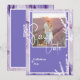 Capture o encanto do amor em nossa Lavanda Roxa Salve o Design. Colocada contra uma moldura púrpura ondulada, uma deliciosa foto do casal em uma configuração cheia de lavanda ganha o palco central. O texto elegante, "Salvar a Data", junto com os nomes dos casais, adiciona um toque personalizado. Esta design funde maravilhosamente a serenidade da lavanda com o entusiasmo de celebrações iminentes, criando um anúncio visualmente espantoso e sincero.