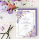 Moderno e moderno, este bonito casamento no estilo rústico Salve o design do cartão de data apresenta uma fama roxa lavanda embelezada com flores roxas lilás, verde-aquarela empoeirado azul, verde-aquarela, brilho dourado e mostra a tendência de apontar as mãos. Parte de uma suíte de casamento. Entre em contato com o designer para produtos correspondentes. Copyright Elegant Invites, todos os direitos reservados.