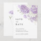 Soft lavender and lilac florals meet delicate white hydrangeas in this elegant Save the Date card, designed for couples who love a refined, romantic wedding aesthetic.