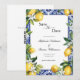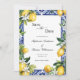 An elegant lemons Mediterranean blue tile white florals wedding save the date with QR code for your wedding website on the back side. See our invitation and RSVP cards and other matching items in the Lemon Mediterranean Wedding Suite.