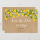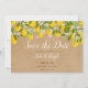 Este limão botânico floresce, salve o cartão de data, apresenta um roteiro elegante, salve a data acima de seus detalhes, definida em tipografia cômica em fundo kraft rústico. Projetado por Thisnotme©