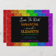 Personalize o convite faux sparkly com seus nomes e informações de casamento. Celebre o seu amor com na moda único na mesma papelaria de casamento de gênero. Bandeja flexível LGBT em brilhos vibrantes vermelhos, laranja, amarelo, verde, azul e roxo vibrantes. *foto de faíscas não é uma falha real!