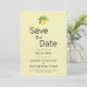 Adicione um toque de charme aos seus anúncios de casamento com estes brilhantes e alegres Cartões salve a data de limão amarelo. Perfeito para casamentos de primavera ou verão, essas cartas lindamente misturam elegância com uma vibração fresca, inspirada nos citros. Mostra limões amarelos desenhados à mão, folhas verdes esmagadas e delicados sotaques florais para um olhar vivo e refrescante. A placa Save the date é baseada no tom amarelo ensolarado para exudir calor e alegria. Estes cartões guardados dão o tom para uma celebração alegre enquanto dão aos seus convidados uma deliciosa espreitadela no seu tema de casamento. O design de limão simboliza frescura, felicidade e amor — um começo perfeito para o seu grande dia!