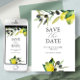 Anuncie seu noivado com este moderno cartão de save the date. Ele apresenta uma mistura de tipografia clássica e cursiva com uma borda de meus originais limões amarelos e ramos de oliveira em aquarela em um fundo branco crocante. O verso do cartão é de uma cor verde sage complementar. As cores podem ser personalizadas para combinar com a paleta de cores do seu casamento. Use os campos do modelo para personalizar com seu nome e data de casamento. Escolha entre uma variedade de papéis de alta qualidade. Meu preferido para este é o branco feltro porque se parece com papel de aquarela. Um design rústico e elegante para casamentos e anúncios de noivado. Para ver a suíte de papelaria de casamento correspondente, visite www.zazzle.com/dotellabelle