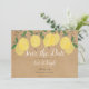 Este cartão de save the date de limões botânicos rústicos boho apresenta um save the date de roteiro elegante acima dos seus detalhes definidos em tipografia chique em um fundo kraft rústico. Projetado por Thisisnotme©