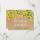 Este belo cartão de mudança de data de chuveiro de noiva rústico com limões e folhagens pode ser personalizado com as informações de adiamento em um fundo kraft rústico. Uma maneira divertida de manter sua família e amigos atualizados. Criado por Thisisnotme©