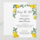 mudar o anúncio da data com uma decoração linda de limões amarelos e folhas verdes.