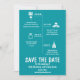 Conte a todos os seus convidados um pouco sobre o seu relacionamento ~ talvez alguns fatos engraçados que eles não sabem! Seus convidados vão adorar este Salve a Data divertido e caprichoso nas cores Turquesa / Verde Água e Branco! Para consultas sobre alterações personalizadas de design pelo designer independente, por favor, envie um e-mail para paula@labellarue.com ANTES de personalizar ou fazer um pedido.