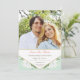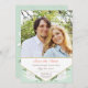 O design mistura a tradição com uma chama moderna. O esquema de cores pastel e as flores brancas evocam a tradição, enquanto o sans serif text e os elementos geométricos se lembram do moderno. Os lírios representam pureza e nova vida, e sua forma fornece um tema floral ousado, mas suave, para um casamento. Bits de ouro e verdes mais escuros são misturados no esquema de cor da casa da moeda para o calor. Por outro lado, um pop de coral destaca nomes e títulos importantes. Personalize com uma foto pessoal.