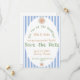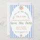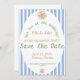 Anuncie seu dia especial com estilo com este elegante cartão de "save the date" com tema costeiro. Com listras azuis atemporais e um design elegante, é perfeito para casamentos à beira-mar, temas náuticos ou celebrações de destino. Prático e bonito, este ímã mantém a data do seu casamento em destaque para os seus convidados. Totalmente personalizável com seus detalhes para um toque pessoal. Faça com que seu "save the date" seja tão inesquecível quanto o seu grande dia!