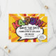 Personalize com seus nomes e detalhes para anunciar a data de seu evento especial. O pop de quadrinhos com arte tem o tema moderno, divertido design, perfeito para casamentos, chás de panela, chás de fraldas, batismos, festas de noivado, comemorações de aniversário, graduações, festas de aniversário e outros eventos especiais ao longo do ano! Uma design legal, moderna e divertida que coloca o golpe no seu dia. Projetado por Thisnotme©